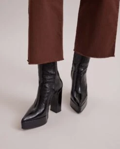 The ADEN is an edgy, patent leather platform heel boot featuring a side zipper and pointed toe. These trendy boots are sure to be a hit no matter the occasion.