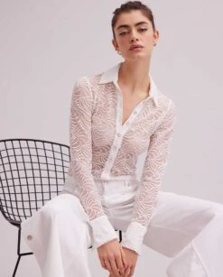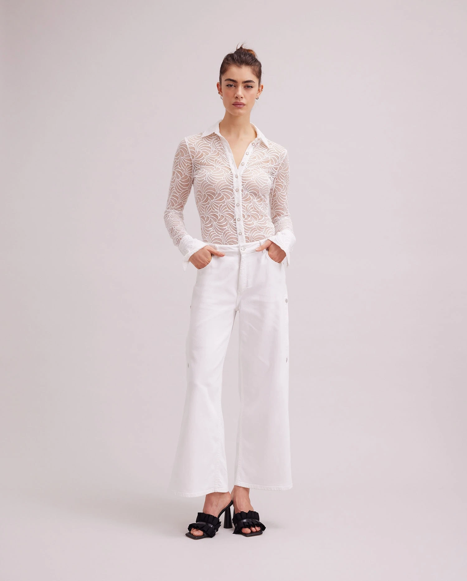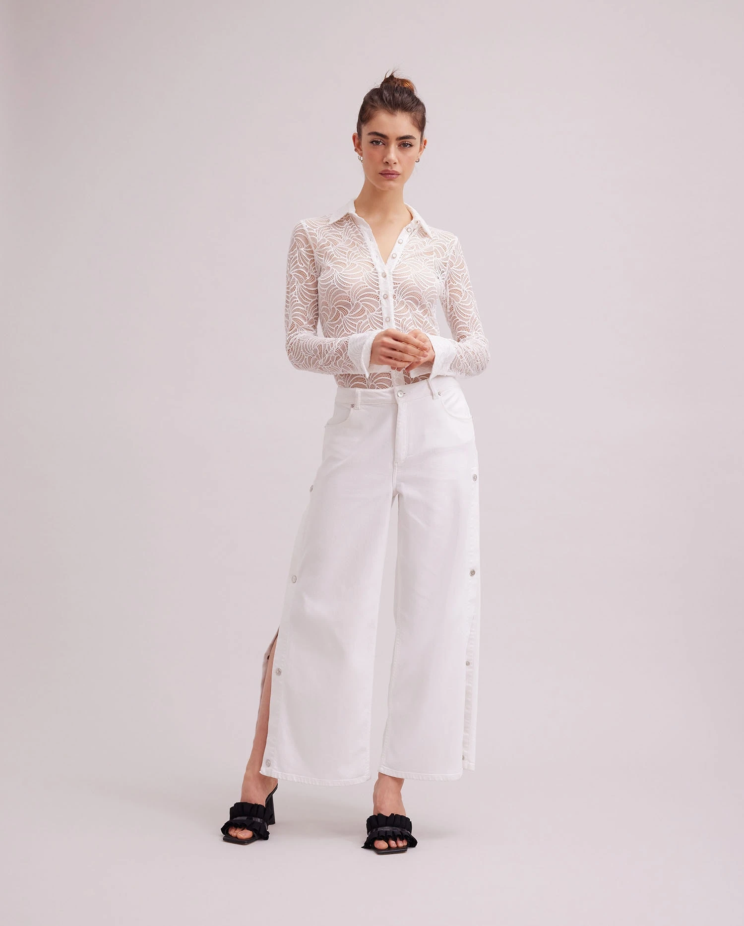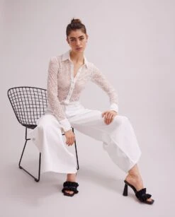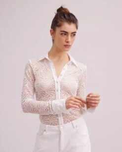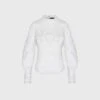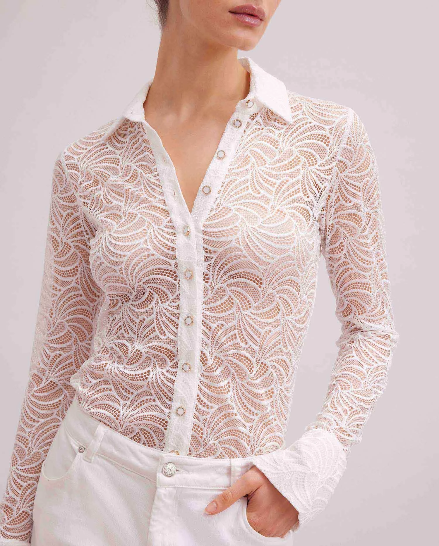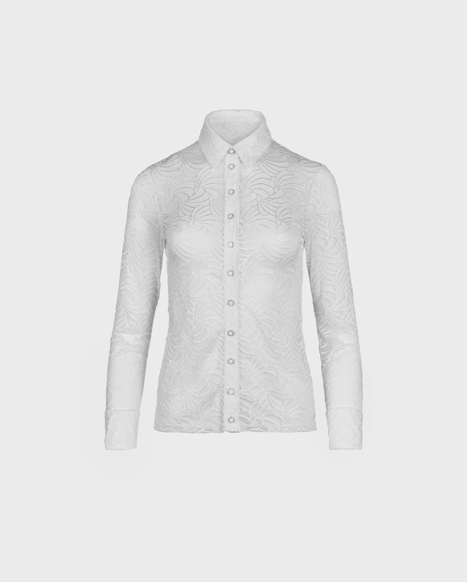 Our ATELIER lace shirt is a timeless and elegant wardrobe essential. Crafted from 100% Pima cotton fabric, this unlined blouse is offered in both black and white. A classic point collar, center button placket adorned with white and crystal buttons, French cuffs that allow for cufflinks in matching Pima jersey, and crystal buttons on the sleeves complete the look. In the same theme you will find FAIENCE & COROLLE.