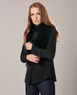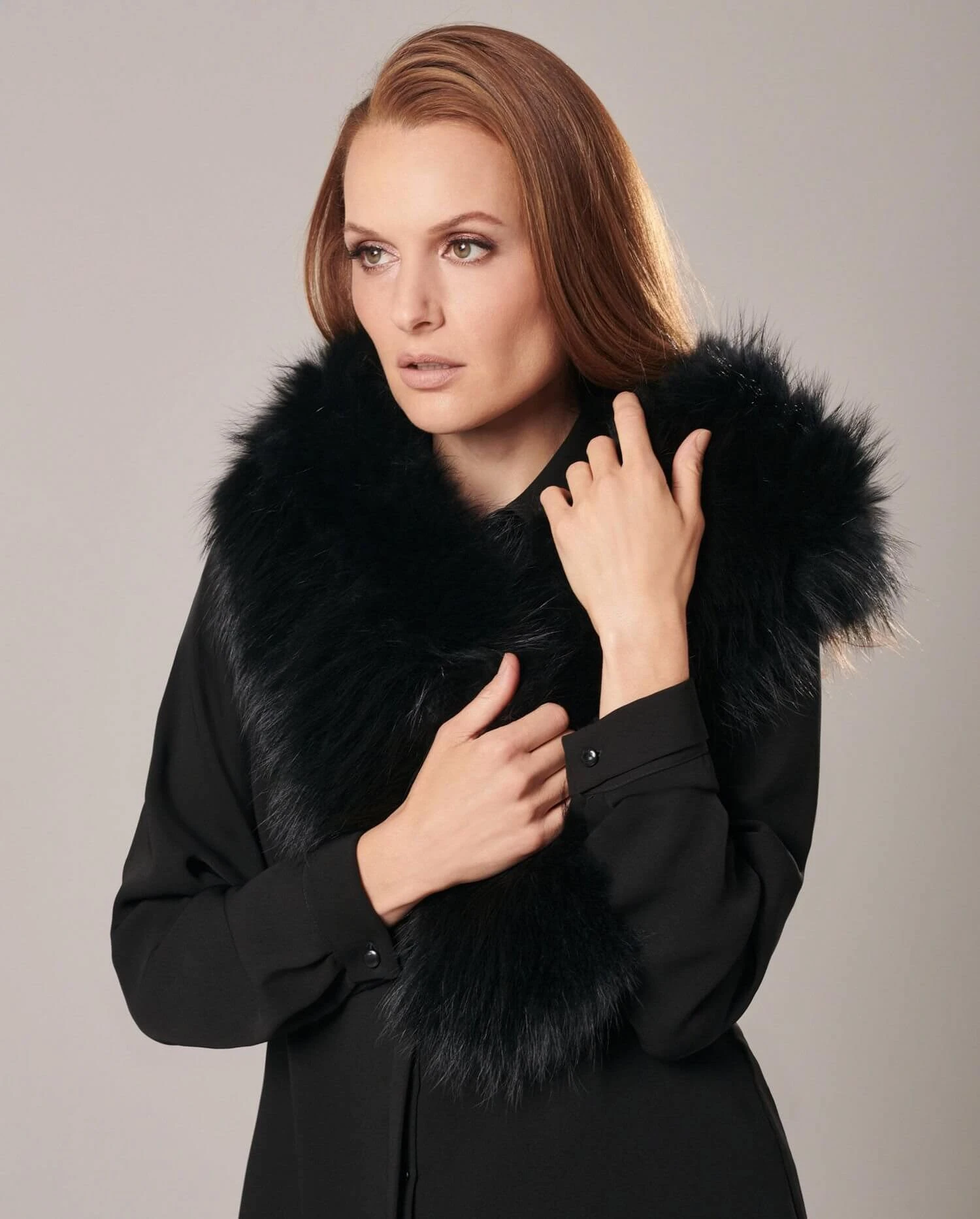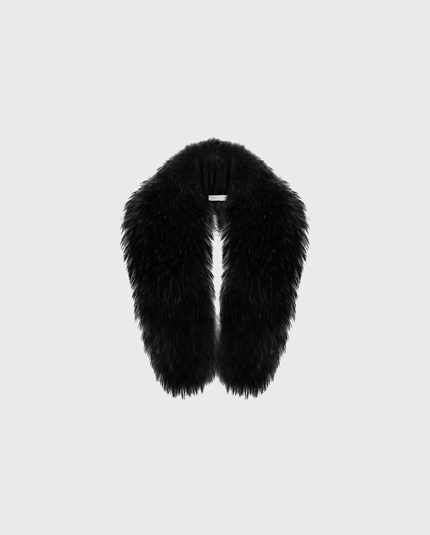 The BLAIR is a black fur collar lined in silk. Wear this fur collar for ideal protection from the cold while staying chic and elegant.