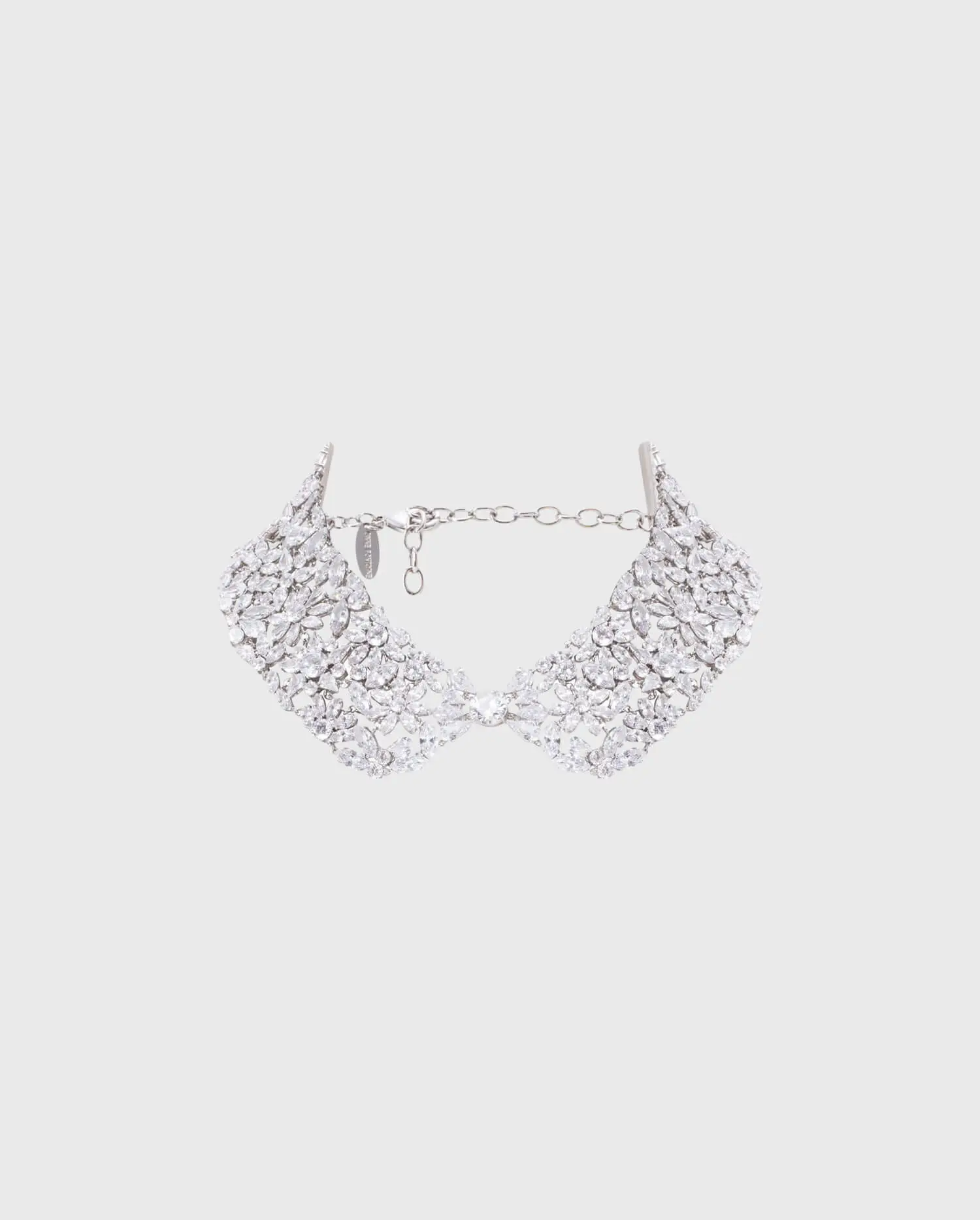 The CAROLINA is a silver collar adorned with multiple connected crystals featuring a lobster clasp closure with an adjustable extender in silver finish. This lavish piece from the Precious collection with multiple crystals and jewels will illuminate your neckline.