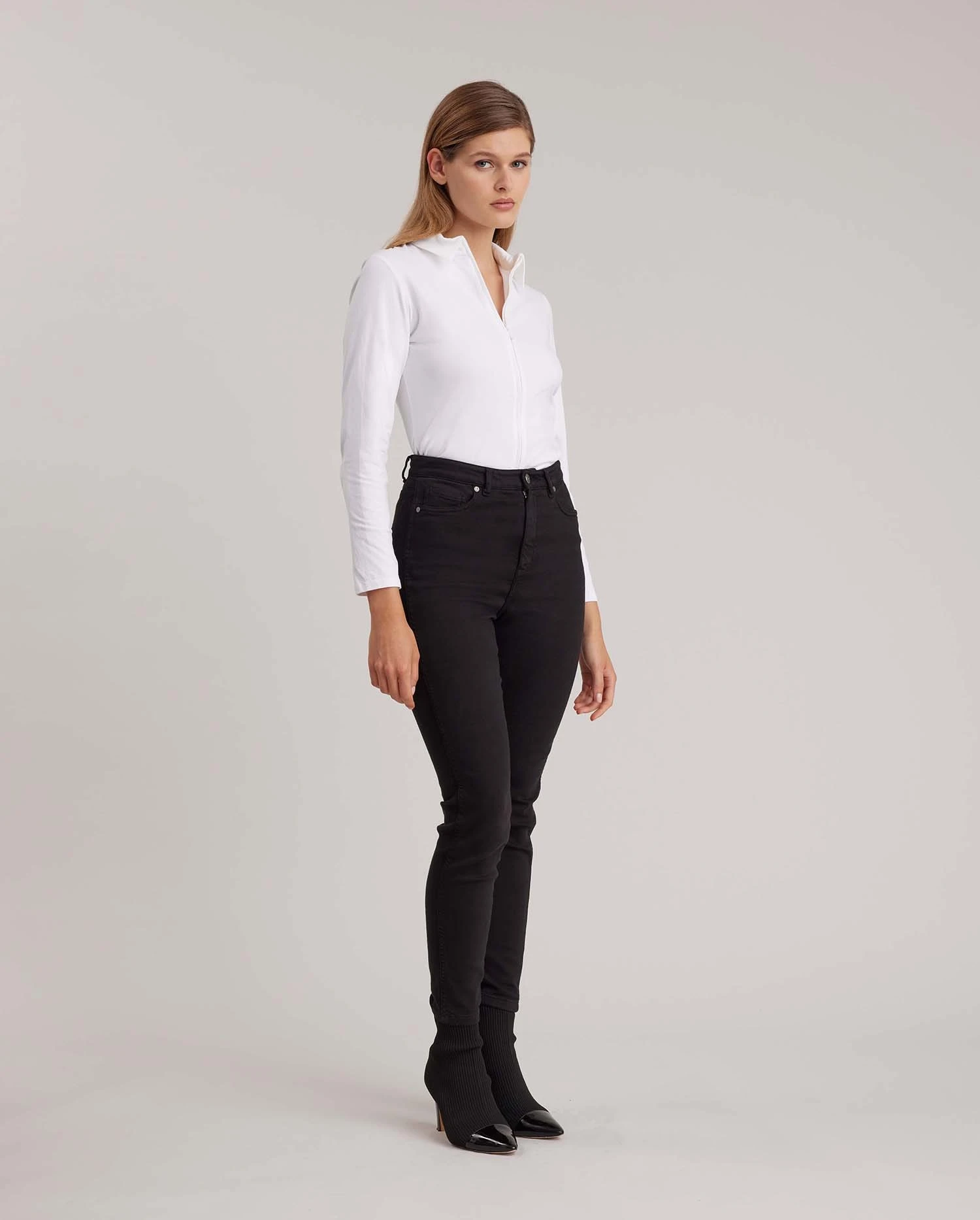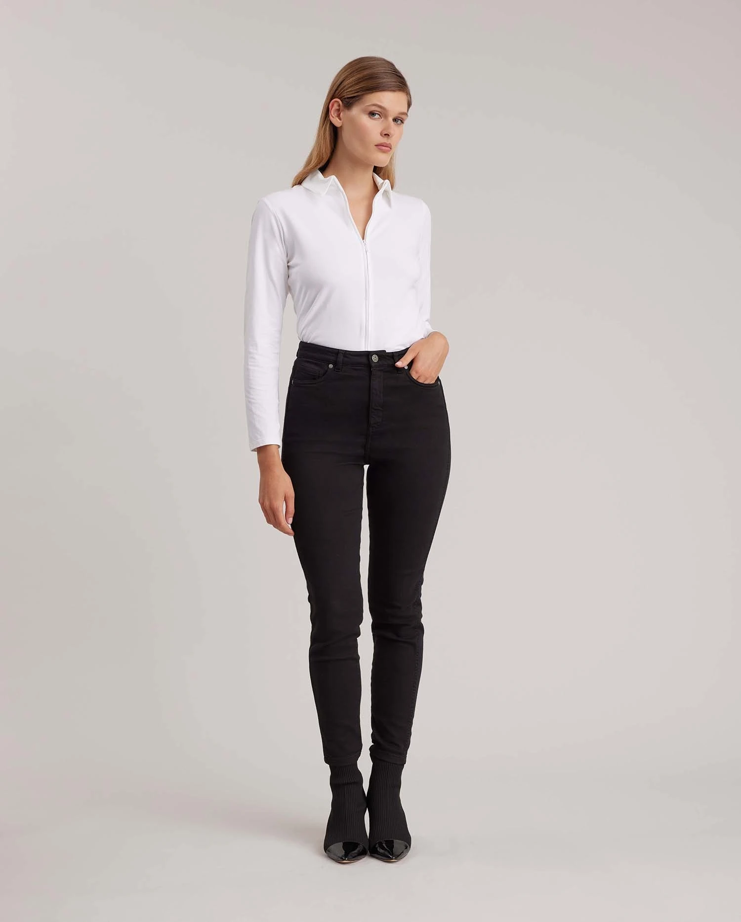 The DARIANNE is a Pima jersey shirt with long sleeves. This shirt features a classic collar fastened by a front zipper. The DARIANNE comes in black and white and is made high quality fibers that make it a light and breathable piece.
