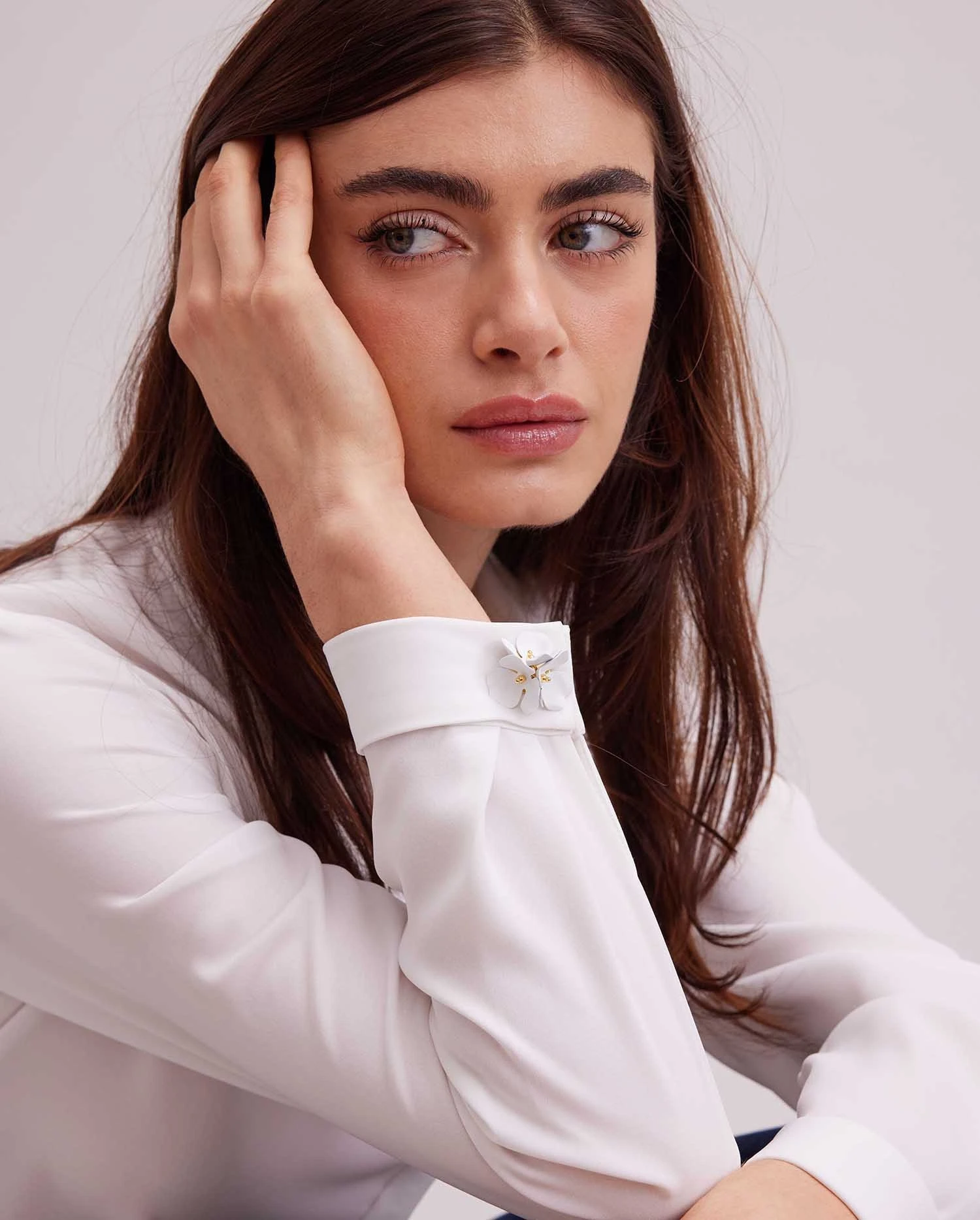 The DUNE is a new and unique piece to add to your collection. It is a white and gold flower cufflink. Wear this unique piece with any outfit for a sleek clean look that compliments any suit or dress shirt. In the same theme you will find EGEA & PERLAYA.