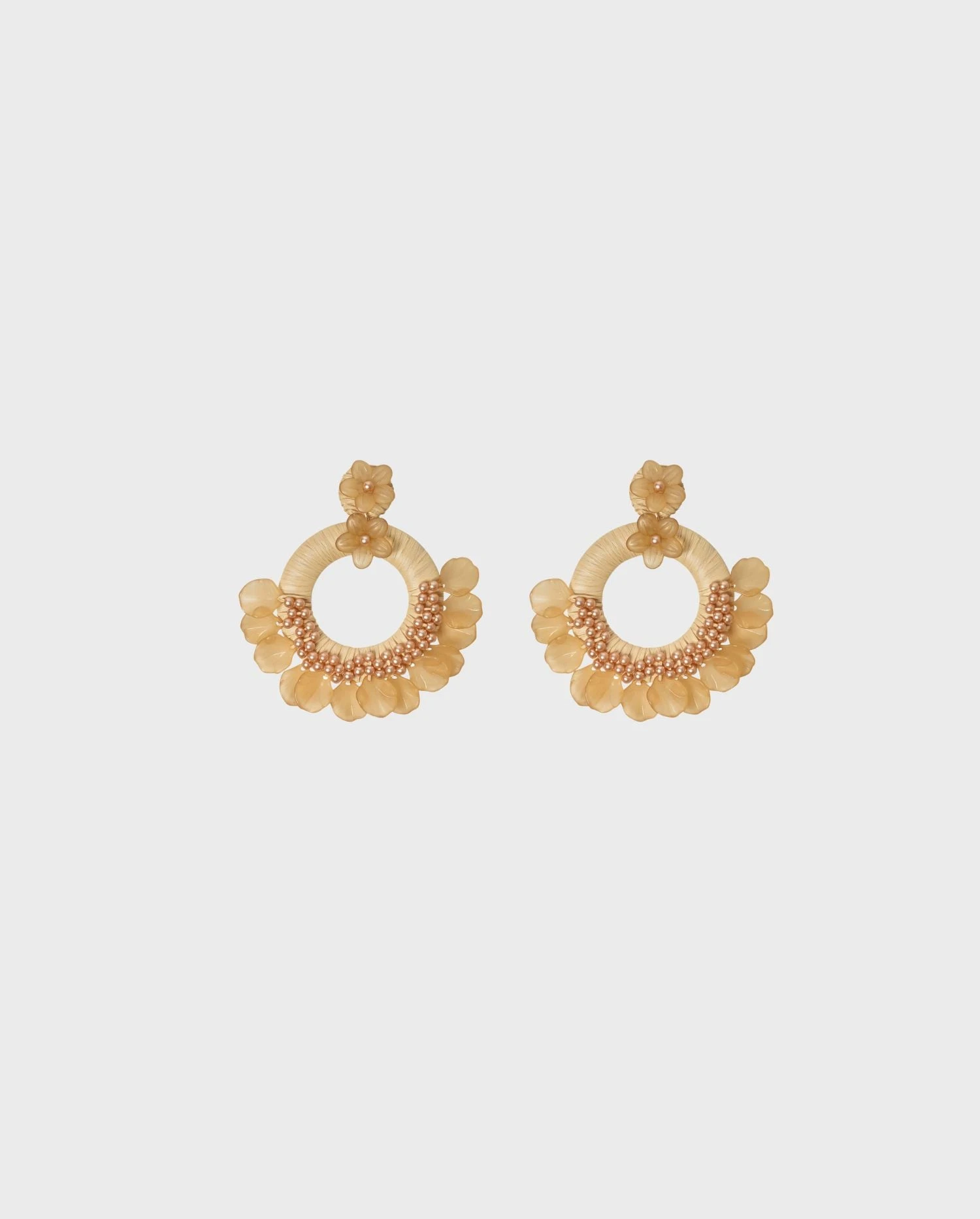 Bring a touch of timeless elegance to your everyday look with the GAIZKA earrings. Featuring clear beige flowers on a textured raffia back drop hoop, and finished with a clip on closure, this pair is an original ANNE FONTAINE design.