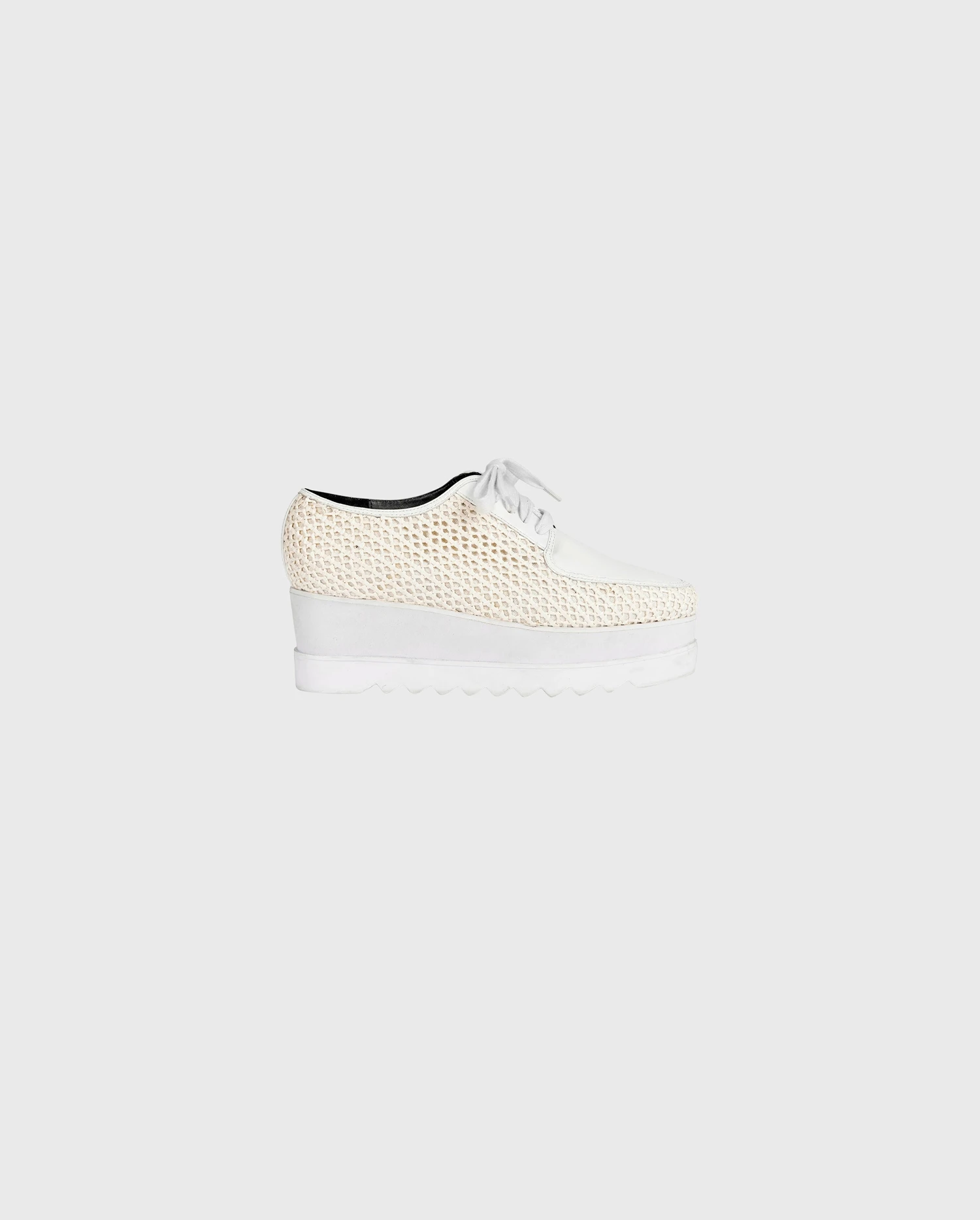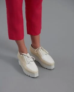 The GEORGIO-SUM are versatile platform sneakers that can be worn with or without the removable fringe. These iconic sneakers return this season in an off white woven design with a white platform and white top front. The airy woven design of this trendy and timeless shoe makes these sneakers the ideal footwear for the spring and summer seasons.