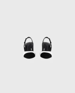 The JAKIE are classic slingback heels with a smooth black and white leather body. These shoes feature a white, soft pointed toe that is tipped in black leather. The adjustable black buckle has slight elastic to allow ultimate comfort.