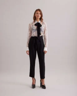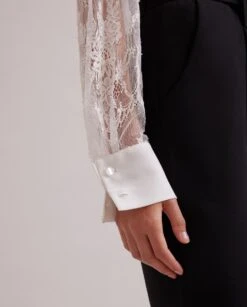 LEONE is a stunning all over sheer floral lace shirt featuring crepe point collar, center button placket and French cuffs that allows for cufflinks. It comes with a removable black crepe neck tie, making the shirt versatile.