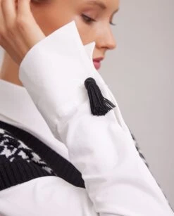 The MARCELLE is a black fringe cufflink with a knotted base. Pair with any of our signature ANNE FONTAINE white shirts for a chic ensemble perfect for a night out on the town.