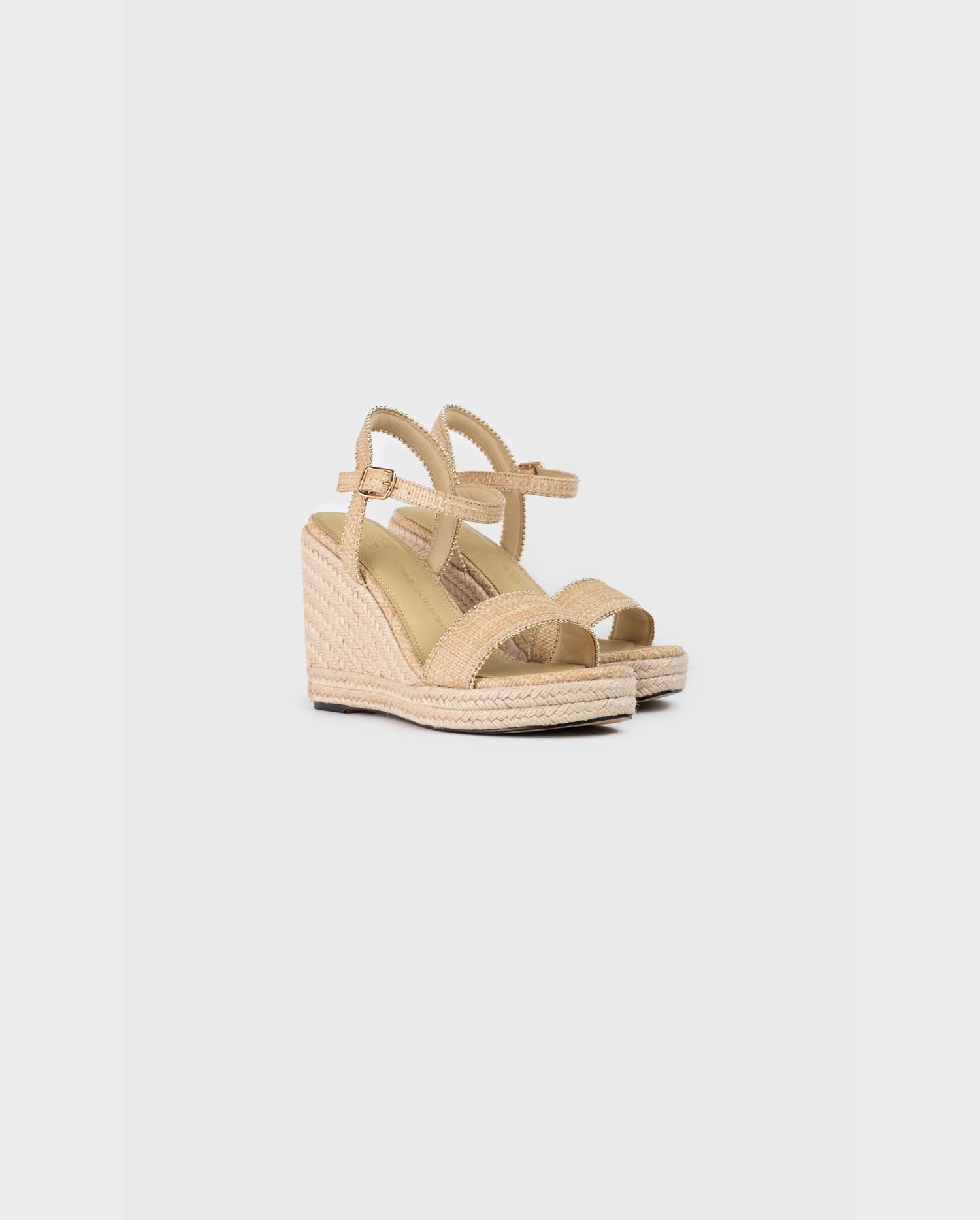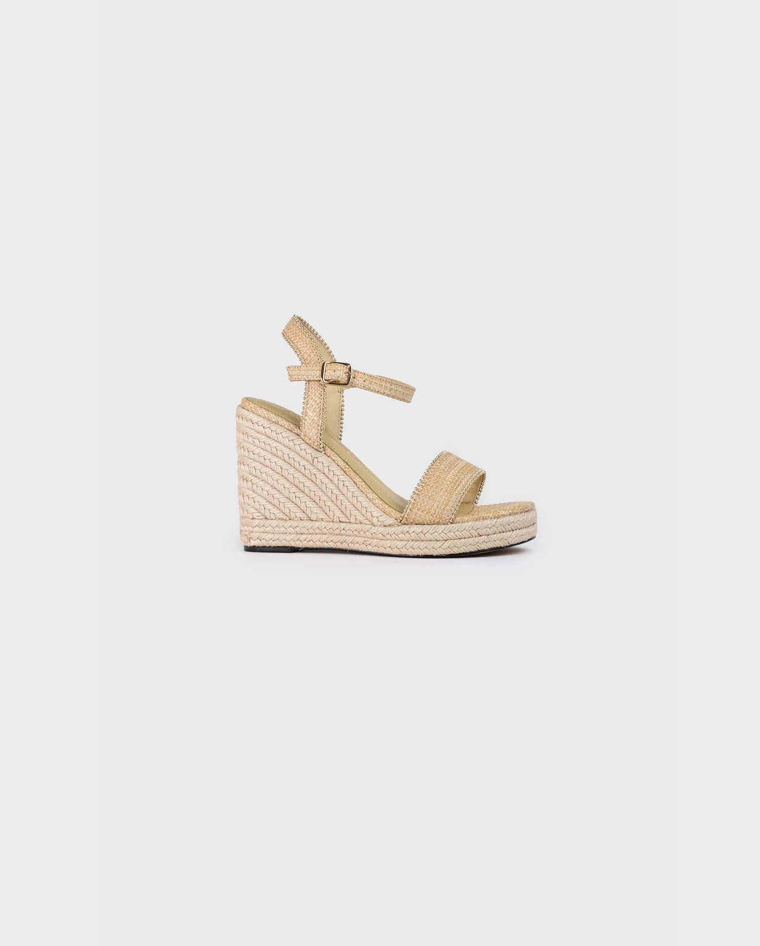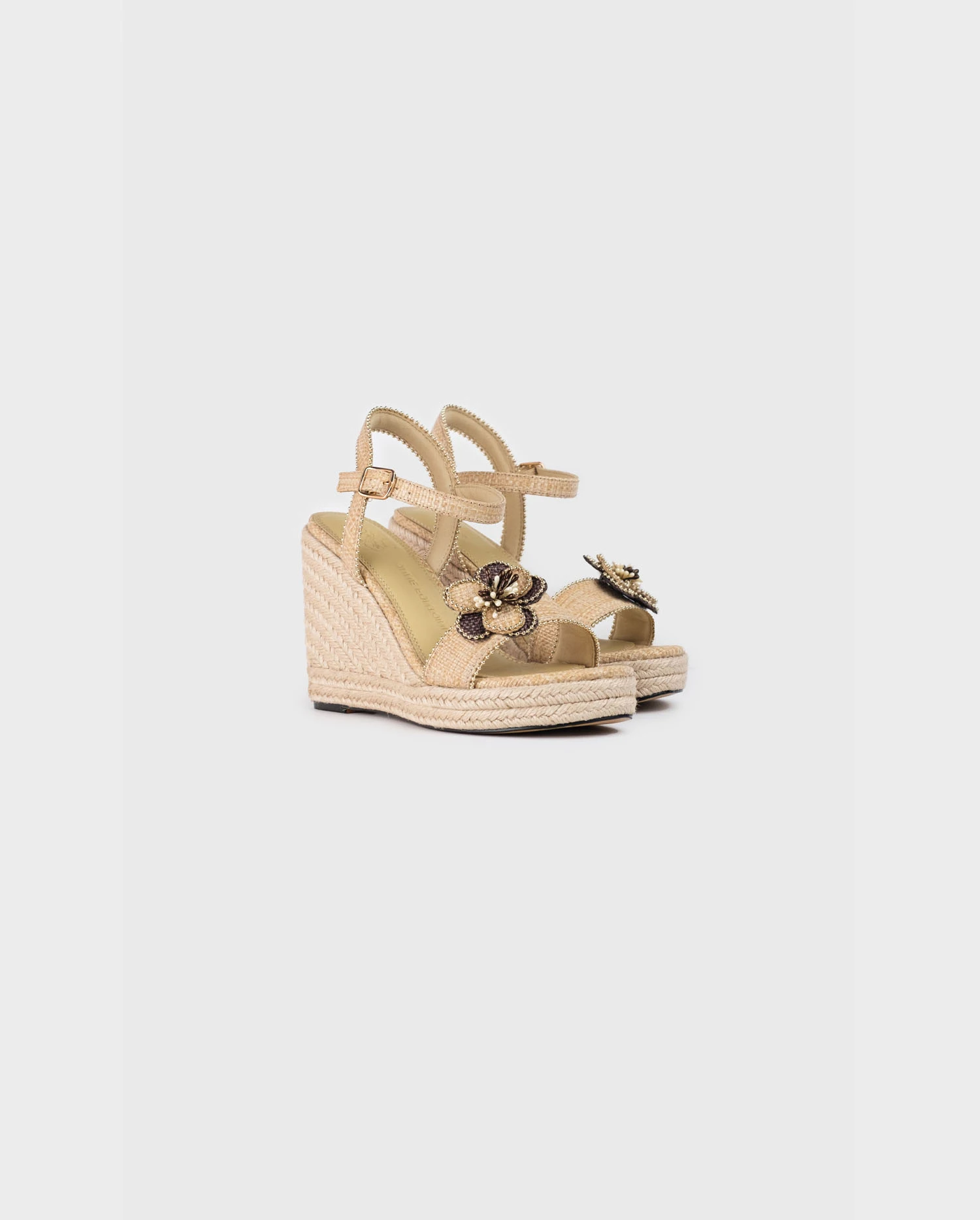 The ONECA sandal is a wedge platform and heel in jute, enhanced with a delicate flower detail along the toe straps. An ankle strap completes the look of this ultra-chic sandal. Pair with our EULALIE dress for the perfect warm-weather look.