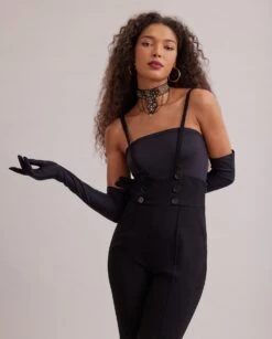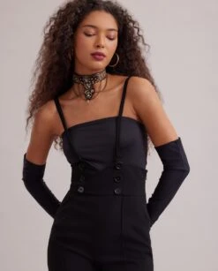 The ORBIE is a fabric choker set with jewels and chains in gold featuring a velvet ribbon in the back for closure. This magnificent choker will decorate your neckline with its unique and elegant design. You can easily match it with your best outfits for a chic and original look.