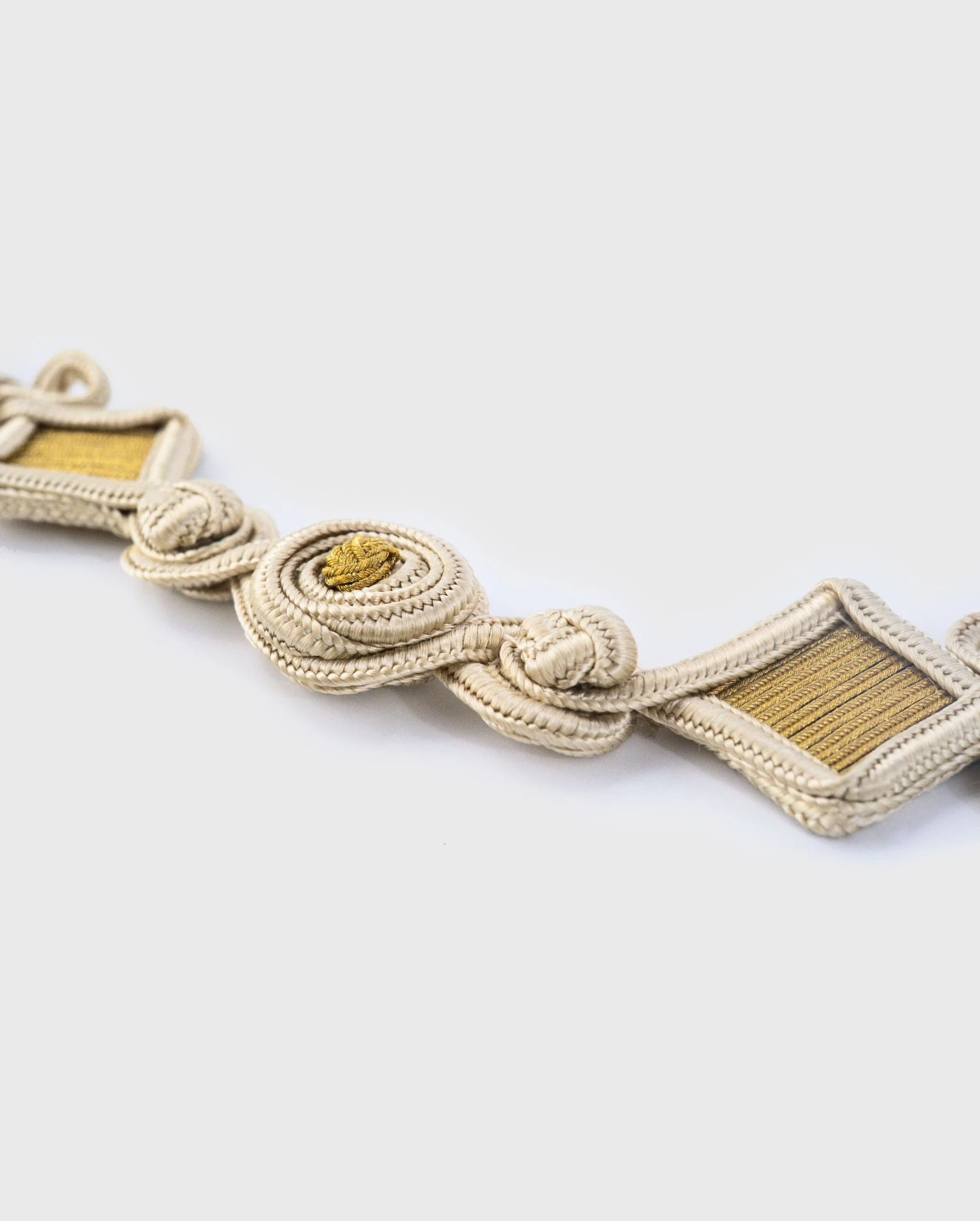 - Woven geometric circles and diamond shapes