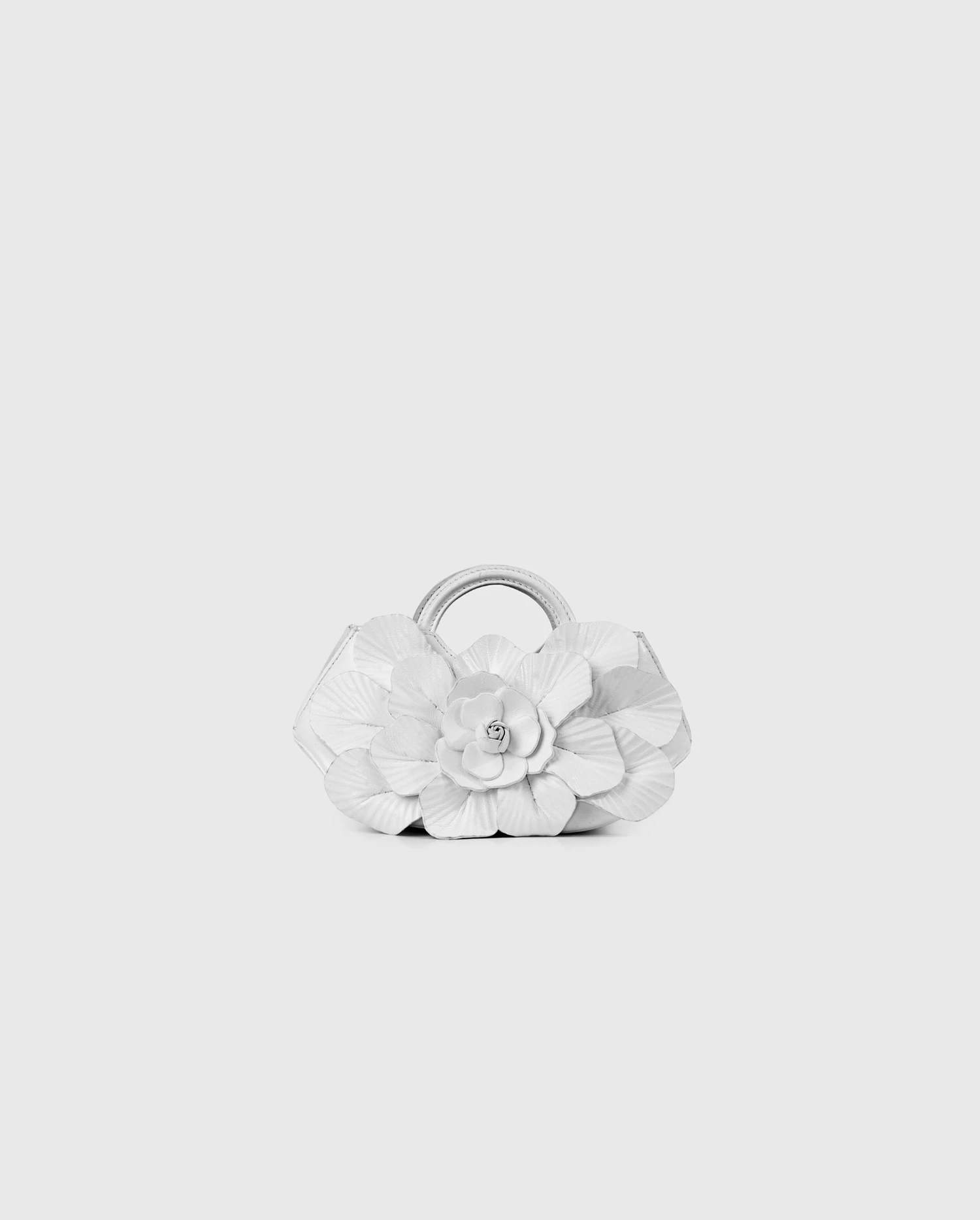 - Miniature handbag in white with floral leather details