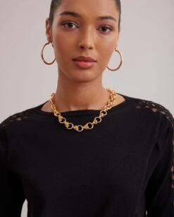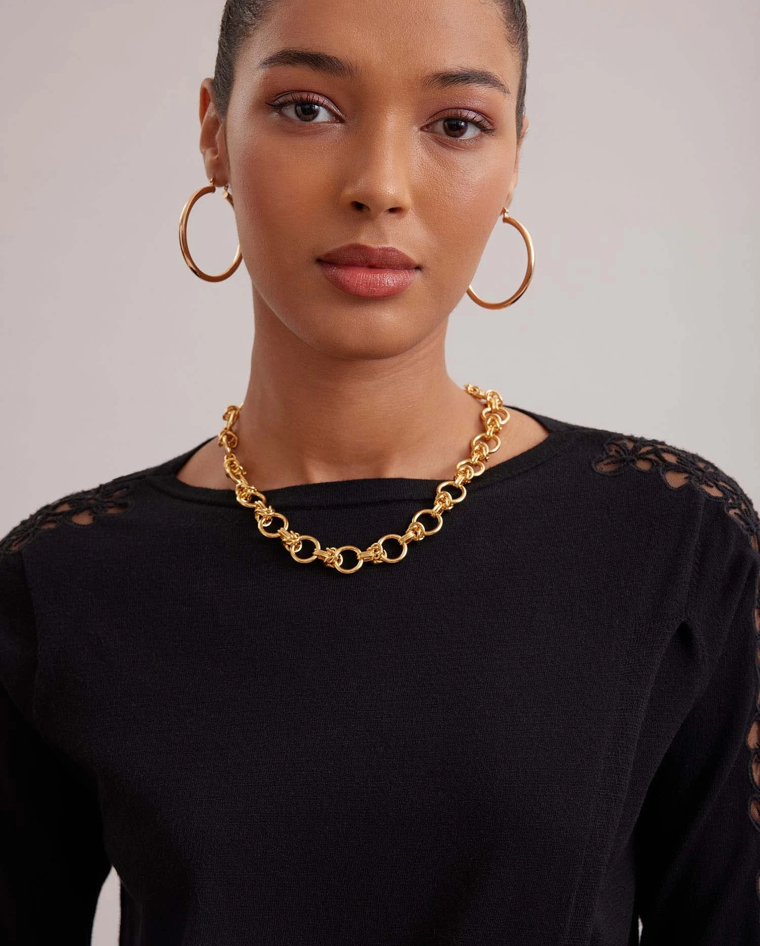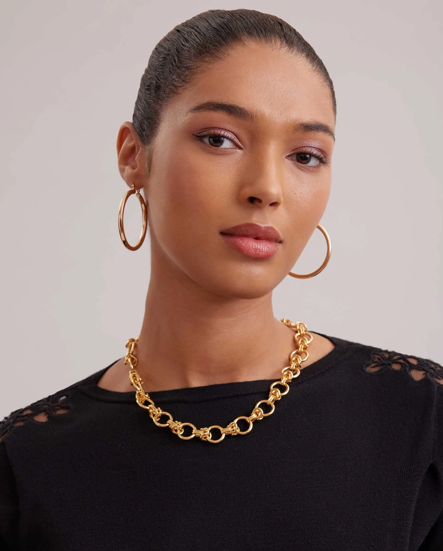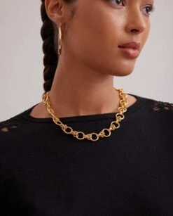 The SHELLEY is a gold link chain necklace that is adjustable. This simple necklace will add a touch of effortless sophistication to any look. In the same theme you will find JODELLE.