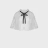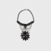 The TANA are elegant and refined earrings featuring white and clear flowers on a textured black drop hoop. These earrings are an original ANNE FONTAINE design and have a clip on closure.