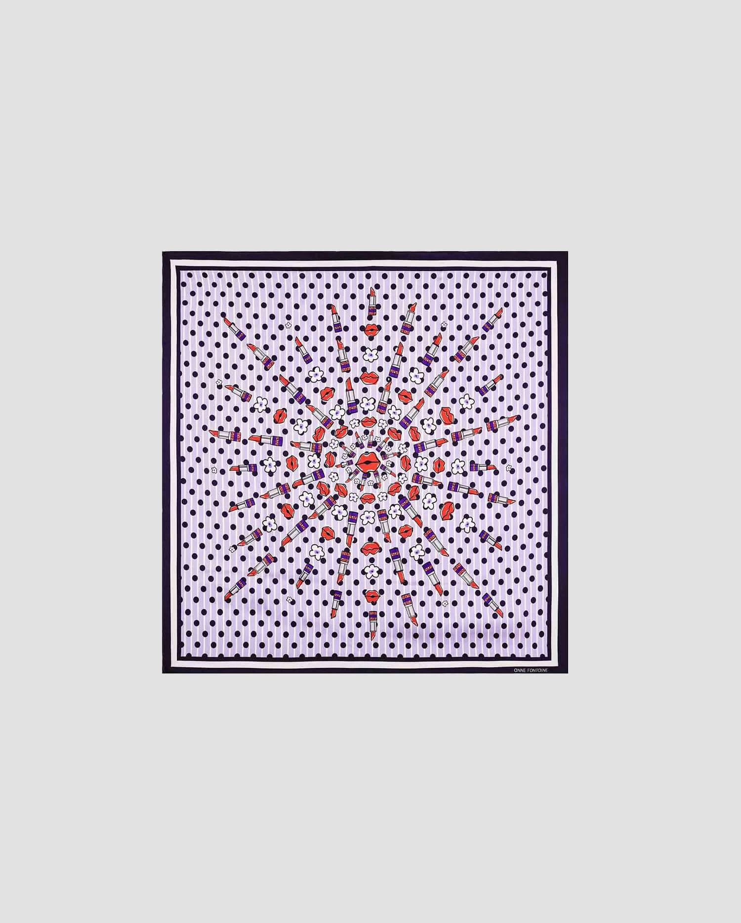A wise woman once said, there’s no such thing as too many lipsticks. A whirlwind of kisses is represented in this whimsical print. The seduction of this print is composed of a subliminal dot pattern on a beautiful lilac background. An ode from ANNE FONTAINE representing the beauty of all women.