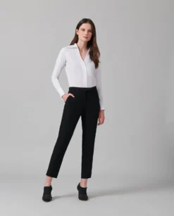 - This shirt consists of two fabric. The front is a crisp poplin that is woven tightly to avoid transparency. While the back and sleeves are a fitted stretch Pima jersey knit. These fabrics together create the perfect fit and is easy to wash.